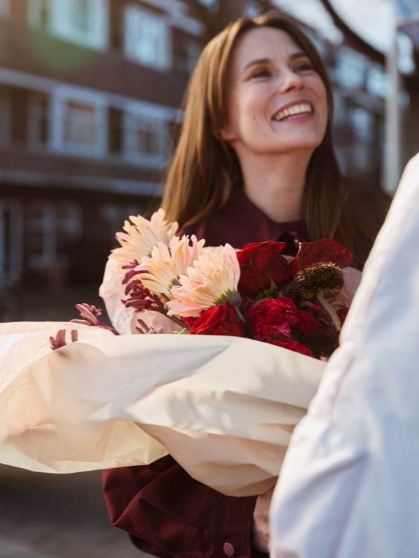 Als je druk bent, kan het verleidelijk zijn om even snel een boeket online te bestellen. Maar dan weet je niet precies wat je krijgt en hoe de bloemen eruit zien. Kies je bloemen liever zelf uit bij je lokale bloemist en maak het boeket extra persoonlijk door er een handgeschreven kaartje of gedicht bij te doen!