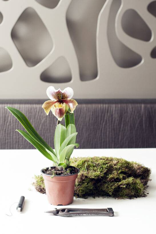 - Gib regelmäßig lauwarmes (Regen-)Wasser und Orchideendünger, aber achte darauf, dass die Orchidee nicht zu nass steht.