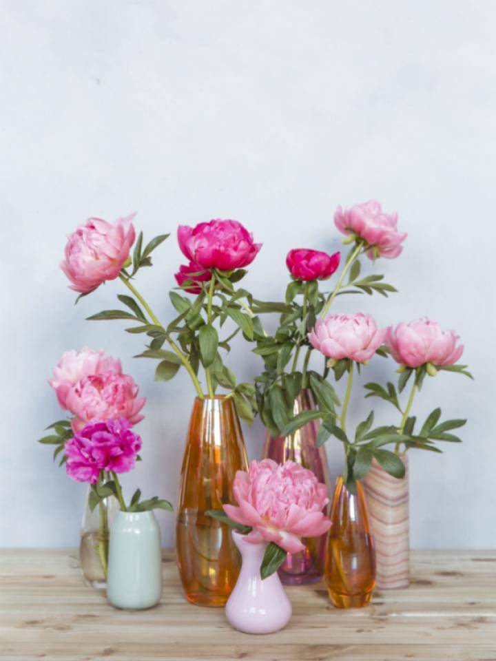 If you think about it, finding the perfect outfit for your Peony is a task in its own right. What fits with your interior, your mood and this bouncy spring flower? Different vases give different looks: from cheerful to romantic to rugged. Let us show you the effect!