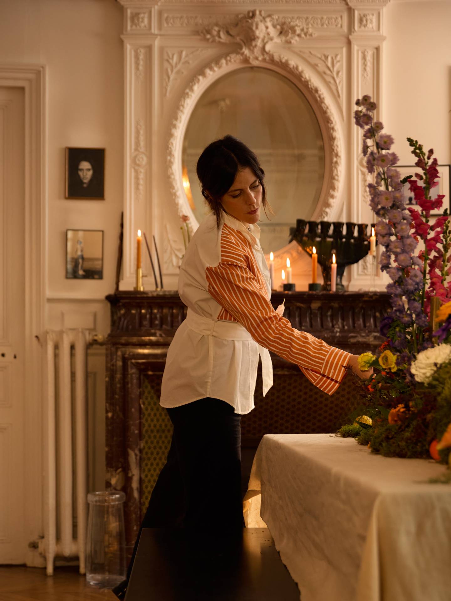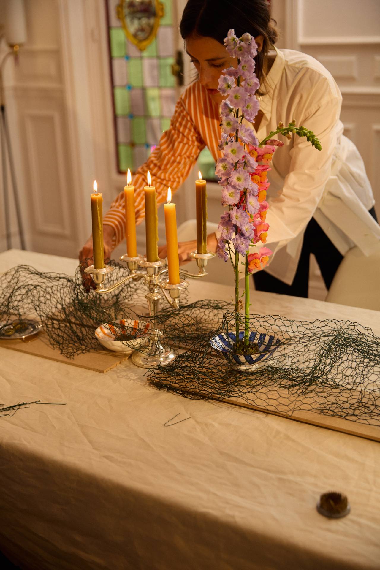 Dès que vous êtes satisfait du résultat final, vous pouvez vous attaquer à l'habillage votre table. Pensez à des chandeliers avec des bougies assorties à la composition pour créer une atmosphère encore plus chaleureuse. Dressez ensuite la table avec vos plus beaux services et verres.