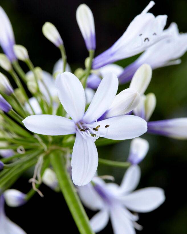 La plante est également appelée lys africain. Le nombre de variétés est limité, la plupart étant dérivées de l’Agapanthus africanus. La plante fleurit en été, avec de petites fleurs bleues ou blanches. Il en existe des variétés à feuillage persistant ou caduc. Ce dernier groupe résiste assez bien à l’hiver, qu’il passe sans feuilles. L’agapanthe se plaît dans des bacs et pots, pour agrémenter volontiers votre balcon ou terrasse.
