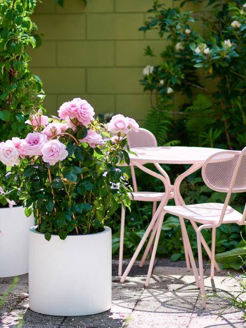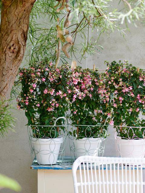 Geef je tuin of terras een snelle zomerupdate door plantenpotten met roze planten te vullen, zoals op de foto hierboven. Combineer Alstroemeria met Petunia, Oost-Indische kers en Diascia. Door companion planting met verschillende roze tinten toe te passen, geef je een ongedwongen, romantisch gevoel aan je buiten.